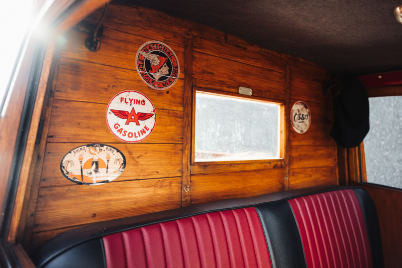 This example is beautifully restored, with deep red paint, polished wooden cargo area (sides and planked bed), black wheels, and period details. It's a practical yet stylish classic, powered by the original 1.1-liter inline-four engine (around 30 hp).