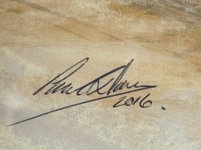 Zeer mooie aquarel op karton van Racewagen blauw in kader.
