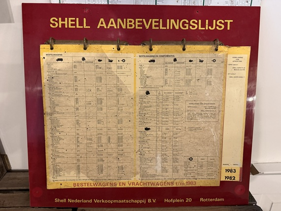 - Authentiek: Het is een origineel Shell-object uit de jaren '80, met de originele lijsten voor diverse automerken.