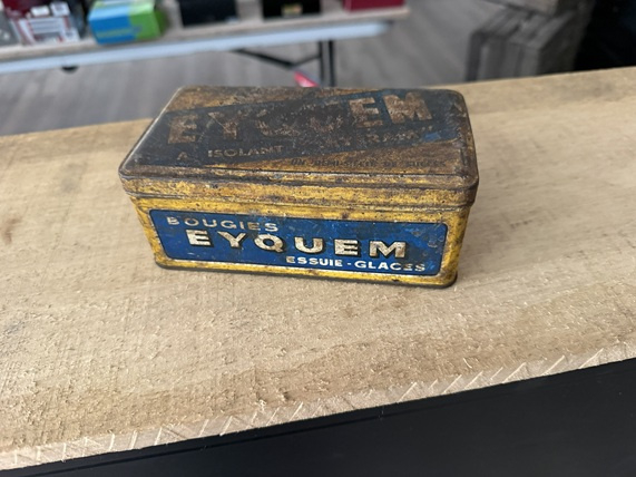 Dit charmante blikje, met zijn karakteristieke patina, roest en gebruikssporen, vertelt een verhaal van weleer. Het vertegenwoordigt een tijdperk waarin de automotive-wereld in opkomst was en de naam Eyquem synoniem stond voor kwaliteit en innovatie.
