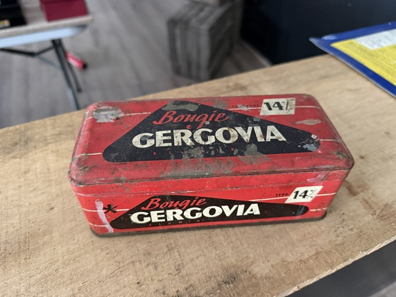 Dit is een authentiek, metalen blik van een historisch Frans merk dat gespecialiseerd was in de productie van bougies. Opgericht in de stad Clermont-Ferrand, veroverde Gergovia een plaats in de opkomende automotive-wereld in de vroege 20e eeuw.